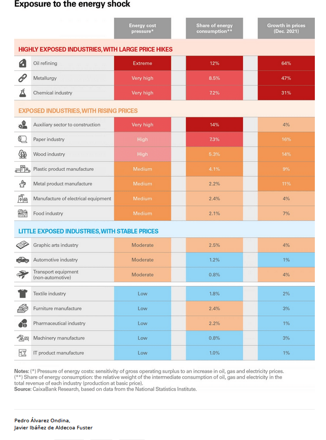 Acolo se emonstrează mecanica distrugerii industriilor prelucrătoare europene din cauza creșterii prețului petrolului. Se arată corelația dintre creșterea prețurilor la energie și prețurile de vânzare ale produselor. Puteți vedea că, după o astfel de creștere a prețului, nu există nicio posibilitate practică ca industriile din UE să funcționeze. Următorul tabel rezumativ oferă o listă a industriilor despre care autorii cred că vor fi afectate cel mai mult de creșterea prețului energiei.