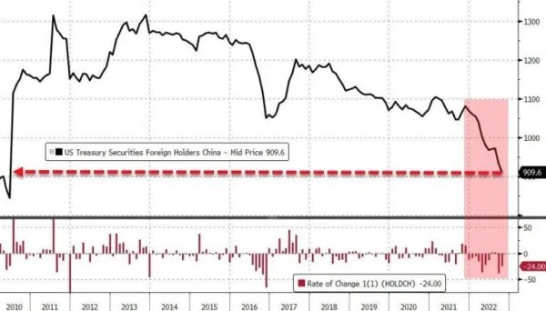 Acest lucru se întâmplă în timp ce China, Japonia și alte țări descarcă Trezoreria SUA la prețuri record.