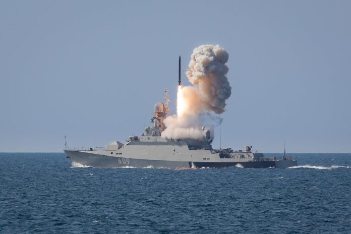 Vineri, o fregată a Marinei Ruse a lansat o salvă de rachete de croazieră de înaltă precizie Kalibr, de atac pe uscat, pe depozit, care, a spus Zaharov, a fost devastată până când singura urmă a existenței sale a fost un morman de moloz mocnit.
