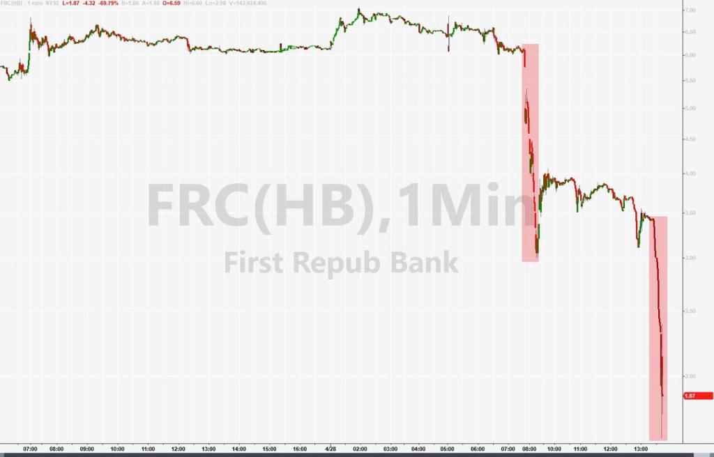 Cel mai vizibil semn al acestui lucru a fost falimentul de facto al First Republic Bank. Aceștia au fost preluați sub controlul FDIC weekendul trecut, după ce deponenții au retras 100 de miliarde de dolari sau peste 60% din depozite doar în luna martie. Aceasta face parte dintr-o revoltă generală a poporului american împotriva sistemului lor bancar criminal și fraudulos, care a scos suficienți bani din sistem (cel puțin 1,5 trilioane de dolari) în ultima lună pentru a falimenta toate băncile și nu doar First Republic. FDIC și-a epuizat deja cufărul de război, așa că orice anunț de „salvare” sau achiziții de la JP Morgan va fi minciună și fraudă.