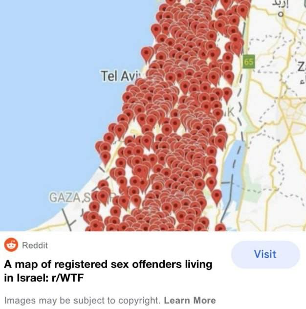 Apoi, aruncați o privire la această hartă a infractorilor sexuali care trăiesc în Israel. Acum înțelegeți de ce atât de mulți membri ai Congresului au cetățenia israeliană?