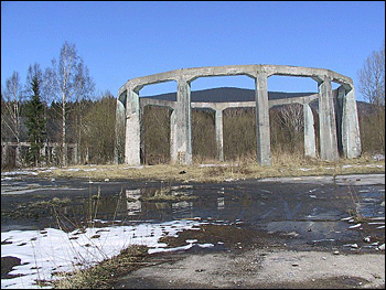 Prin 1944, Thule a produs seria aeronavelor Haunebu I-III – inclusiv unele discuri într-adevăr mari, care au fost capabile să transporte 200 de soldați – cum ar fi imensa navă mamă lungă de 139 metri, cilindrică numită Andromeda-Gerät (dispozitivul Andromeda). Triumful grupului Vril era al 7-lea lor vehiculul, Vril-7, conceput special pentru călătorie interplanetară (avea formă de clopot, n.b.).  Pe măsură ce războiul a luat turnură în favoarea Aliaților, Thule si-a mutat facilitățile de producție într-o mină adâncă din Polonia. Ei au continuat să lucreze la discurile lor cu sclavi până aproape de sfârsitul războiului, moment în care mina a fost inundată apoi s-a prăbușit, pentru a preveni accesul aliaților. Se crede că discurile care au fost în această facilitate au zburat departe, dar unii cred că cel puțin unul sau două au fost capturate. Site-ul prezintă fundamentul unui generator electric mare cu conducte care duc la centrul unei platforme mari din beton, care este tot acolo si astăzi (foto).