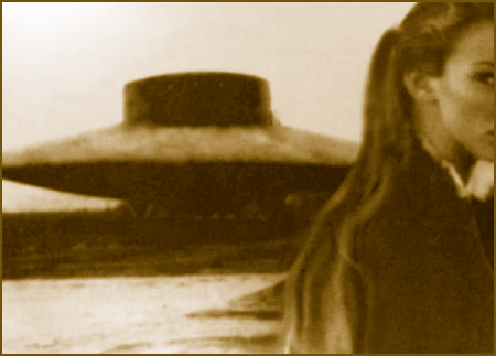 Vril 7 la testarea de la Brandenburg (foto sus). Femeia în prim-plan este mediumul Vril Gesellschaft „Sigrun„, care a fost autentificată în alte fotografii ale celui de-al doilea RM în picioare în fața a 190 de luptători. Ea a supravegheat nu numai construirea aeronavei Vril-7, dar a fost, de asemenea, pilotul ei.