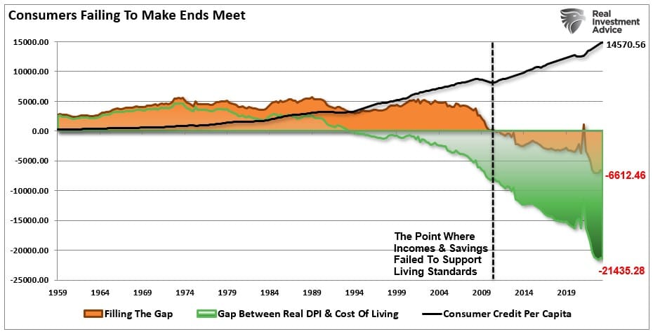 Graficul de mai jos ilustrează modul în care americanii trăiesc în datorii, adică în afara contactului cu realitatea fizică din 2006.