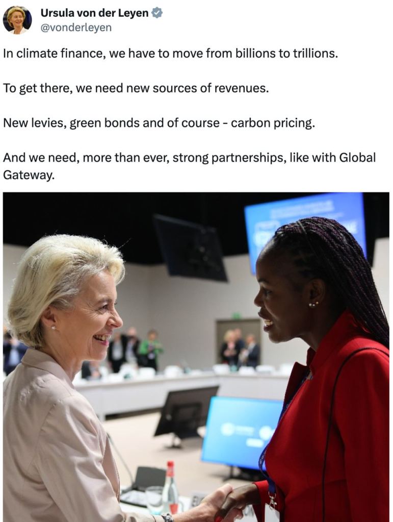 Semnele acestui lucru sunt peste tot. Săptămâna trecută, de exemplu, lideri din aproape 200 de țări și aproximativ 100.000 de delegați s-au adunat în Dubai pentru COP 28, cu pahare de cerșit în mână. Șefa UE, Ursula von der Leyen, a scris pe Twitter „În finanțarea climatică, trebuie să trecem de la miliarde la trilioane”. Regele Carol le-a cerut contribuabililor de pe tot globul să tușească 5 trilioane de dolari în fiecare an pentru a promova agenda globalistă „Net Zero”. – https://slaynews.com/news/king-charles-demands-5-trillion-advance-wefs-net-zero-agenda/