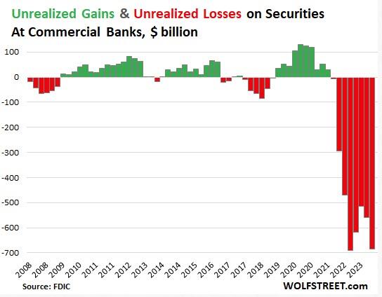 Acest lucru este valabil și pentru forțele armate americane. Departamentul de Apărare a comandat un grup suplimentar de lovitură cu portavion, apărare aeriană, avioane de luptă și sute de trupe în Orientul Mijlociu. Problema: …Pentagonul nu are bani să plătească pentru construire. Colonelul Douglas MacGregor a subliniat în mod repetat că armata americană nu este acum în măsură să ducă un război în mod corespunzător. Acest lucru se datorează faptului că guvernul SUA nu are bani. Pentru a înțelege cât de falimentară este SUA, aruncați o privire la următoarele grafice. Prima arată că băncile din SUA sunt insolvente. Dacă nu și-ar măslui cărțile, cei mai mulți dintre ei, în special cei mari, ar trebui să declare imediat faliment.