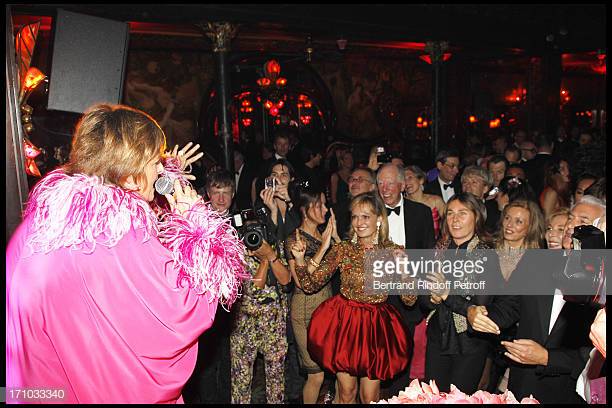 Princess Gloria Von Thurn Und Taxis (on stage), her sister Princess Maya Von Schoenbur Guchau, Lord Jacob of Rothschild, Princess Alessandra Borghese at Gloria Von Thurn Und Taxis And Thaddaeus Ropac’s Anniversary At Maxim’S In Paris. (Photo by Bertrand Rindoff Petroff/Getty Images)