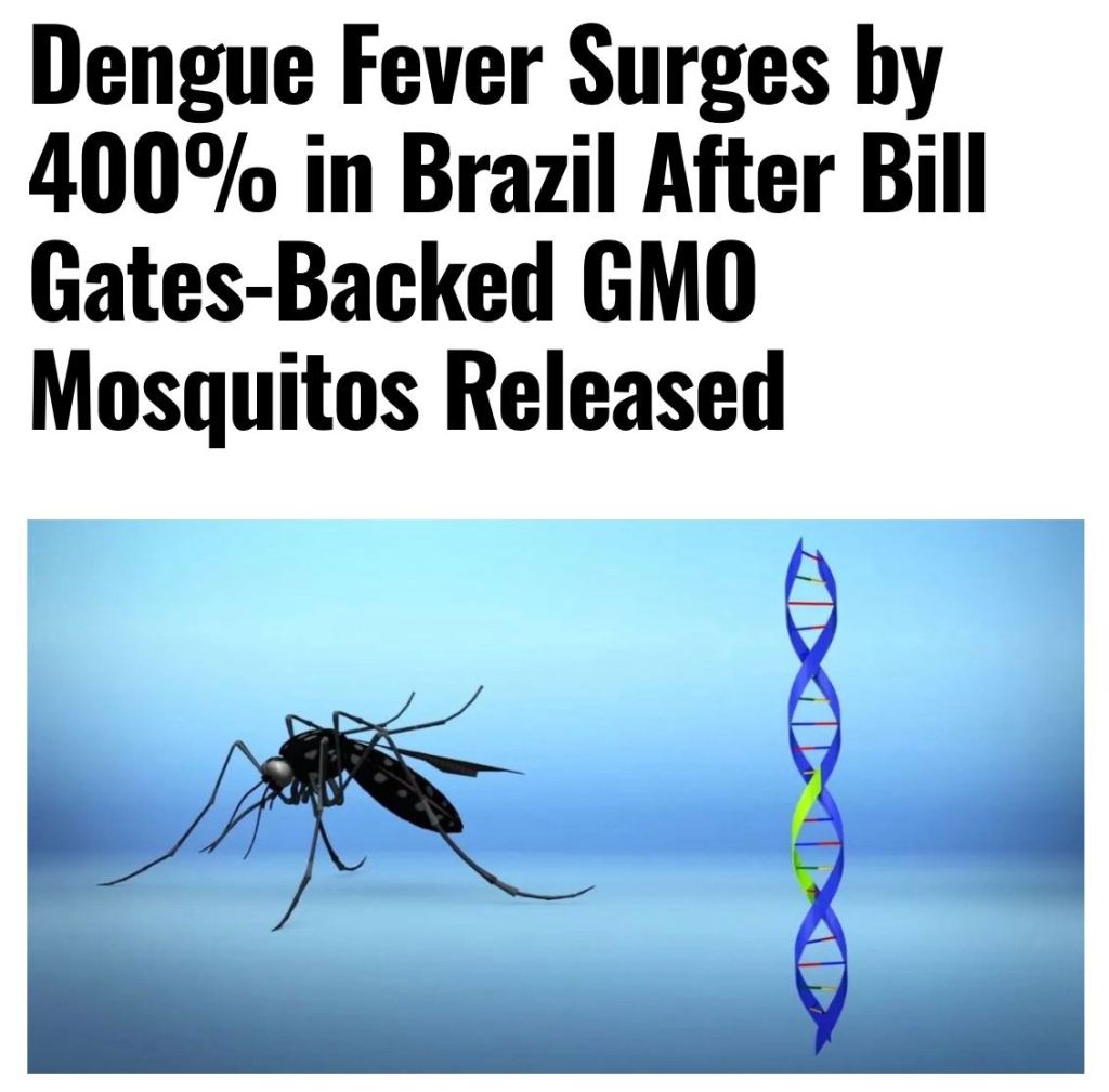 Nu uitați că acești „oameni” încă încearcă să ne omoare cu vaccinuri și arme biologice cu care încearcă în mod fals să dea vina pe Trump. În cel mai recent exemplu, cazurile de febră dengue au crescut cu 400% în Brazilia, după ce țânțarii OMG susținuți de Bill Gates au fost eliberați. Desigur, acum guvernul trebuie să cumpere milioane de doze de vaccinuri 💉 .