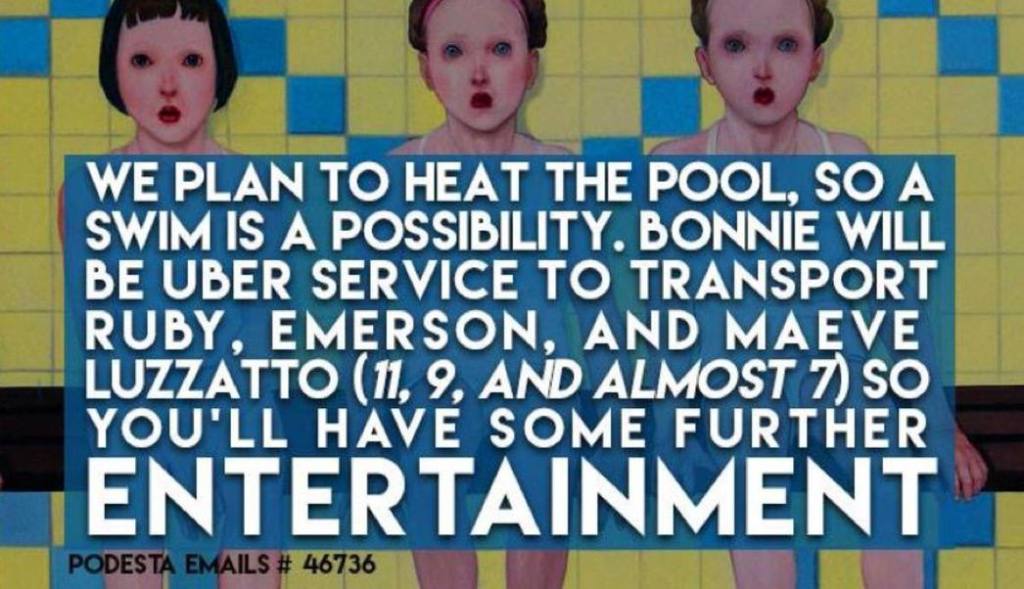 Indiferent, lucrul important este să vedem dacă încep să folosească noul Assange pentru a elibera publicului larg informații despre MK. În special, trebuie să vedem dacă el este folosit pentru a dezvălui informații despre uciderea la scară industrială și torturarea copiilor de către elita MK. Iată, ca reamintire, un e-mail de la John Podesta Rockefeller care spune că intenționează să încălzească piscina, deoarece „Bonnie va fi un serviciu Uber pentru a transporta Ruby, Emerson și Maeve Luzzato (11, 9 și aproape 7), așa că veți avea mai mult divertisment.”
