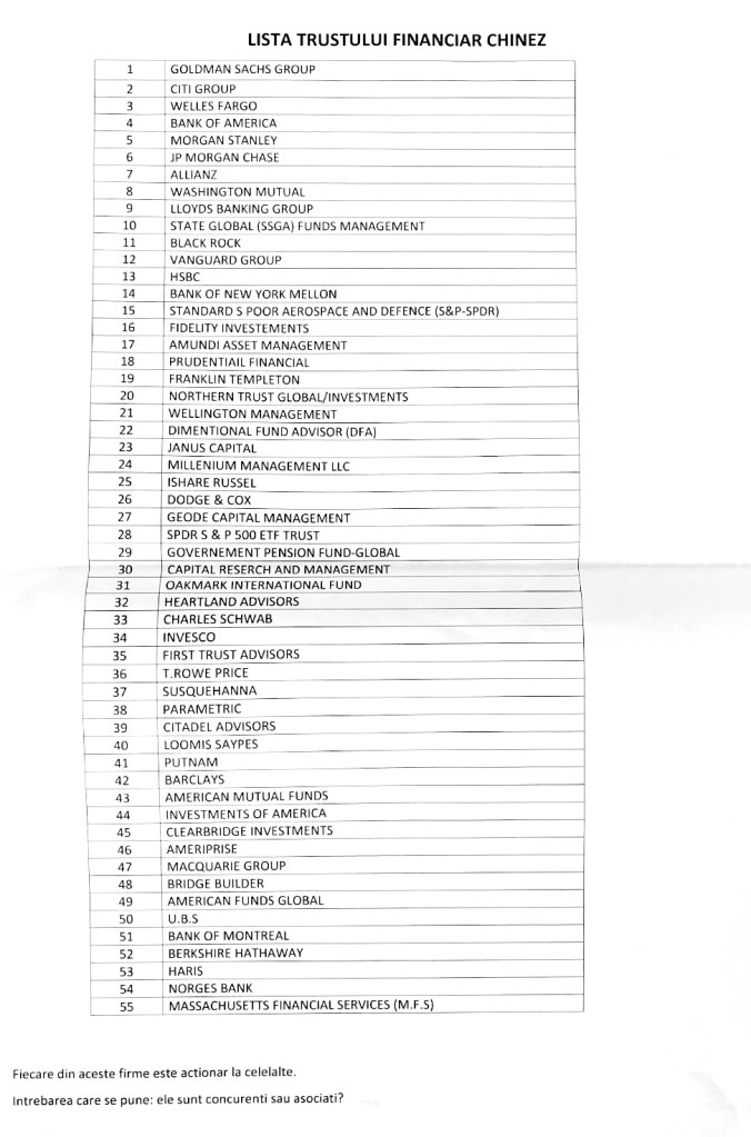 În final, vă reamintim Lista Trustului Financiar Chinez: