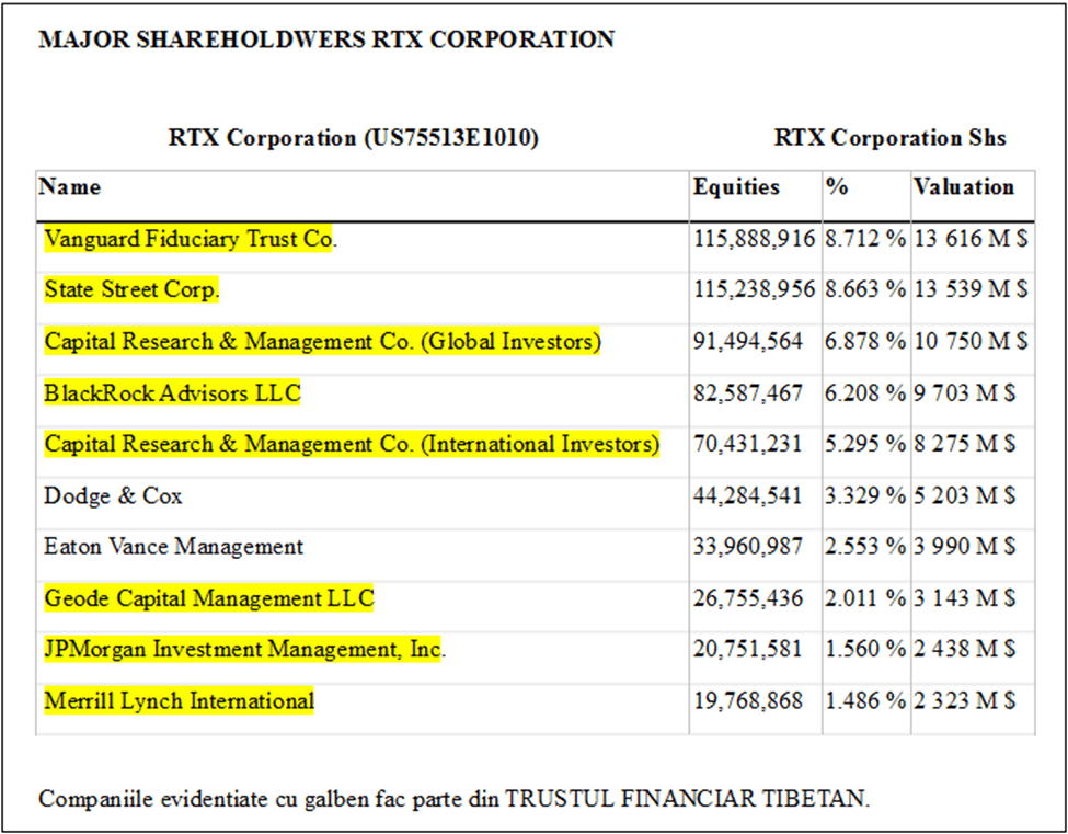 Iată principalii acționari ai Raytheon, adică RTX Companii: