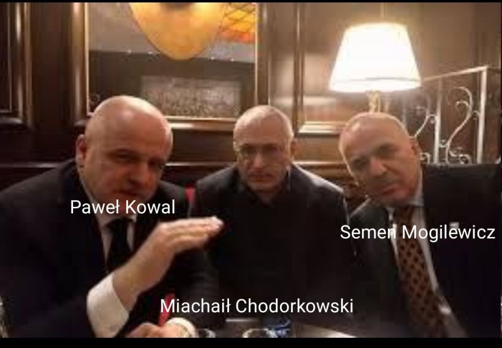 Serviciile de informații poloneze i-au dezvăluit și pe oameni care invocau opoziție față de președintele V.V. Putin ca fiind „în realitate reprezentanți ai celui mai periculos grup criminal din lume, care se ocupă de traficul de arme”. Ne-au trimis această fotografie cu Semen Mogilevich, Mihail Hodorkovski și Boris Berezovsky… „Mafia roșie” a numit în mod greșit „Mafia rusă”. „Nu există nici măcar un rus etnic în acest grup criminal”, spun ei. „Semen Mogilevich a plecat în Israel la sfârșitul anilor 1980, dar a trebuit să plece rapid după ce a vândut Iranului arme israeliene”, adaugă ei. „Apoi, în SUA, a decis să-și subordoneze grupurile criminale locale. Este un om atât de periculos încât americanii nu au decis să-l aresteze sau să-l omoare. Cu toate acestea, i s-a ordonat să părăsească SUA și până în prezent este persona non grata acolo. I se interzice să intre în Israel și SUA. Mogilevich locuiește în prezent în Ungaria și are o fabrică de arme acolo”.