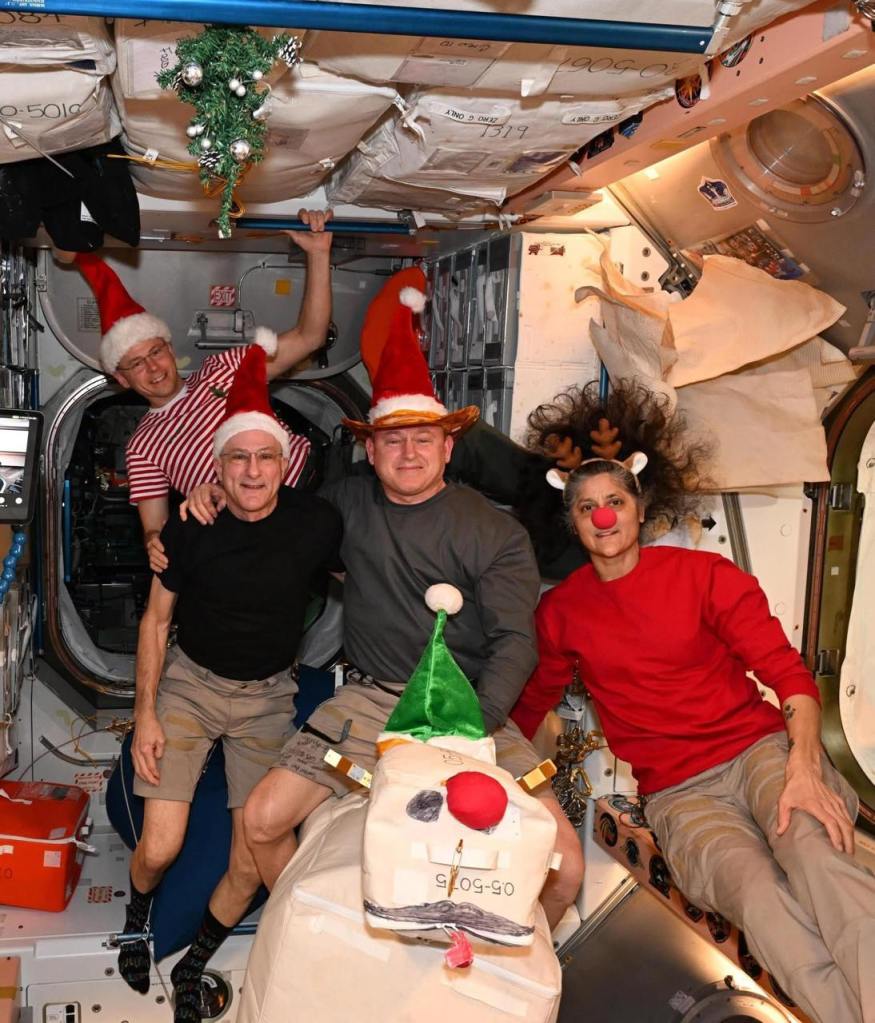 În cele din urmă, săptămâna aceasta, observăm că NASA a fost atestată din nou ca o fraudă. Au scos o poză cu astronauți care ar fi trebuit să rămână blocați pe ISS după o presupusă misiune de opt zile în iunie reușind cumva să împacheteze pălăriile de Moș Crăciun și decorațiunile de Crăciun.