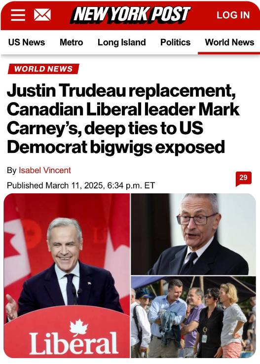 Într-un semn din cap către maestrul său, Carney spune că va vizita Franța și Marea Britanie în prima sa călătorie în străinătate de la locul de muncă, adăugând că în prezent „nu are niciun plan” să-l întâlnească pe Trump, dar „așteaptă cu nerăbdare” să vorbească cu el. De asemenea, acum guvernul canadian ia în considerare anularea/întârzierea alegerilor „din cauza tarifelor lui Trump”. De ce nu menționează tarifele mai extreme pe care China tocmai le-a implementat?
