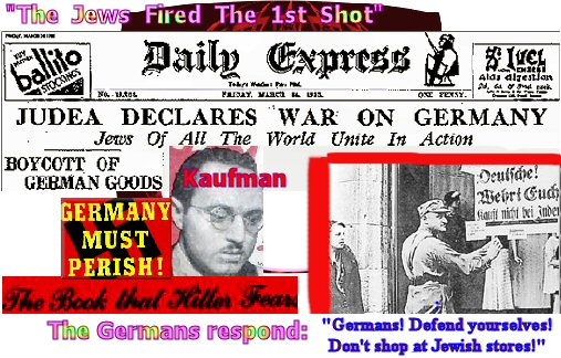 La 24 martie 1933, pe prima pagină a London Daily Express, a apărut titlul: Iudeea declară război Germaniei: evrei din toate țările, uniți-vă!