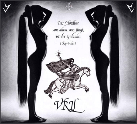 Una dintre forțele utilizate de anumite popoare antediluviene era o energie misterioasă a vieții, redescoperită de naziștii germani, numită forța VRIL. Nikola Tesla a studiat și el aceste câmpuri energetice și astfel a apărut aparent tehnologia scalară. Naziștii credeau că forța Vril provenea de la o rasă de oameni-zei care, în trecutul îndepărtat, au venit pe Pământ în nave spațiale propulsate de această forță. Naziștii germani credeau că fondatorii civilizațiilor din Hyperboreea, Atlantida și Thule proveneau de pe alte planete. Germanii din al Treilea Reich știau că rasele ariene nu au avoluat din din maimuțe din Africa, dar ,,știința” francmasonică voia să distrugă această moștenire divină și să o înlocuiască cu o învățătură satanică care să degradeze omul la stadiul de animal.