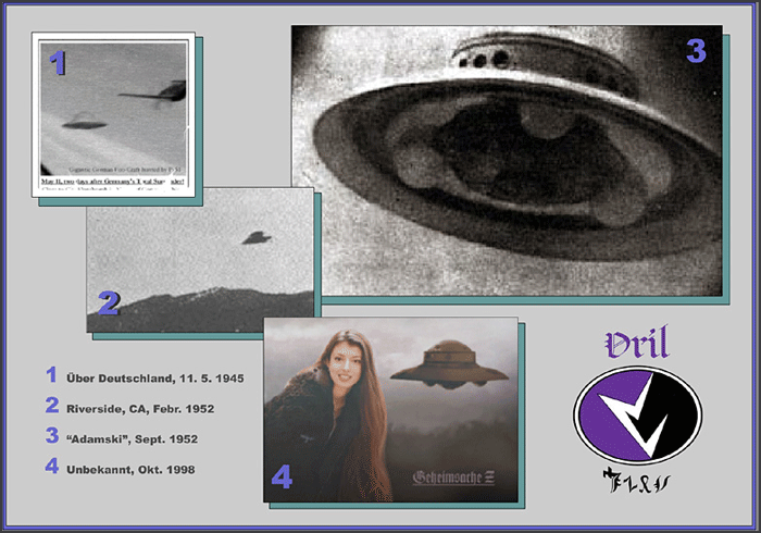 Ei urmăreau încă din 1942 dezvoltarea acestor avioane. Au mai fost construite aşa-numitele „broaşte ţestoase zburătoare” fără oameni la bord, cu menirea să deranjeze orice circuit electric. Particularitatea la apariţia unei UFO este întreruperea oricărui curent electric. C.Stevens, pilot al Forţelor Aeriene ale SUA descrie că, în timpul celui de al doilea război mondial, a văzut Foo-Fighters de culoare gri-verde sau roşu-portocaliu care zburau câteodată la distanţe foarte mici de alte avioane. La începutul anului 1943 a fost proiectat un avion tip ţigară numit Andromeda (139 m lungime). În 1943, de Crăciun, a fost o şedinţă importantă a societăţii VRIL în Colberg, Marea Nordului. Aici s-a discutat efectuarea unor zboruri în cosmos.